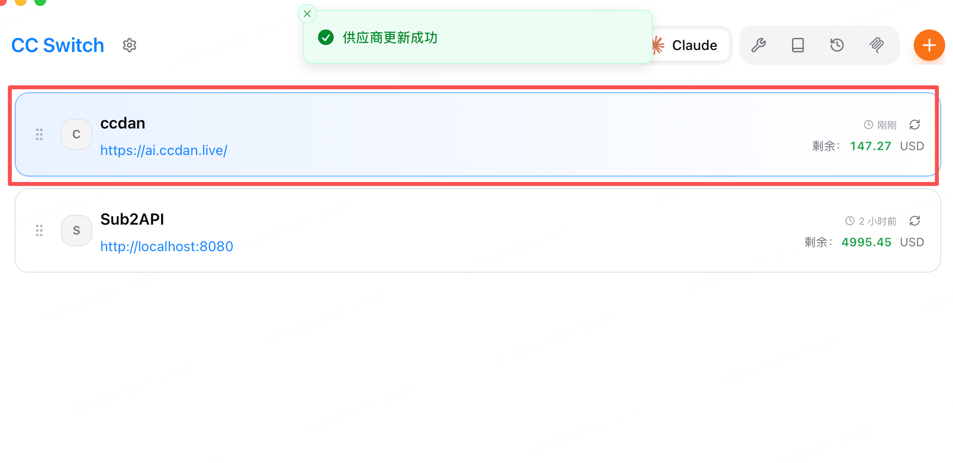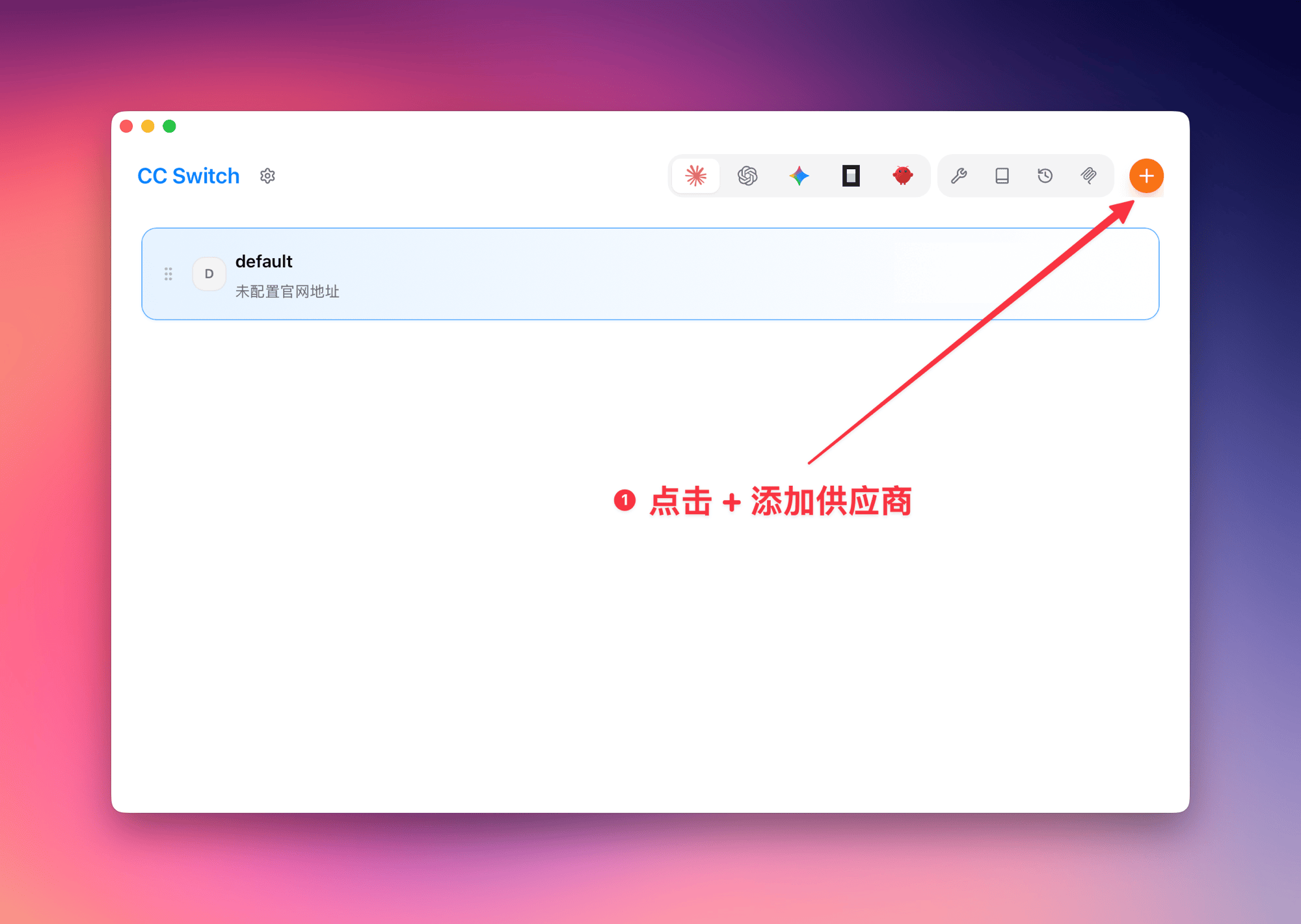 Open CC Switch → provider management → click + in top right.