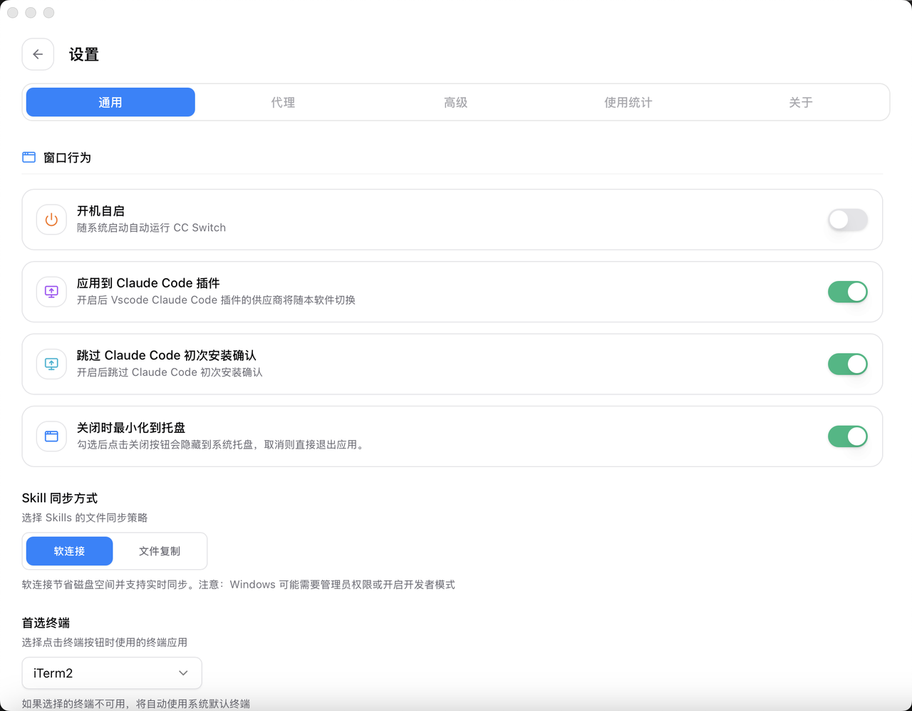 Open CC Switch → Settings → General, and enable "Skip Claude Code initial install confirmation" so first launch isn’t interrupted.