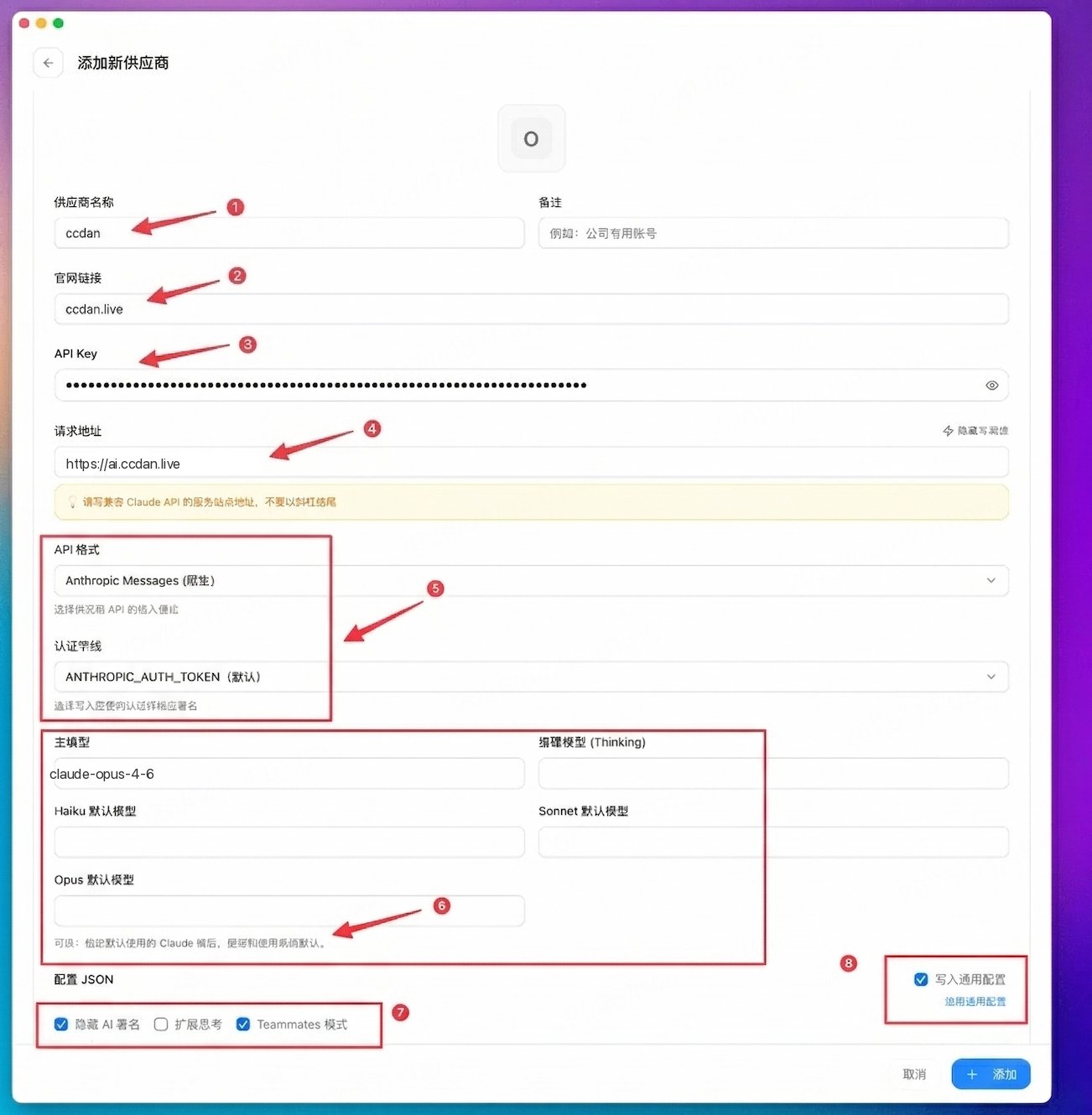 | ❶ | Provider Name | ccdan-claude |